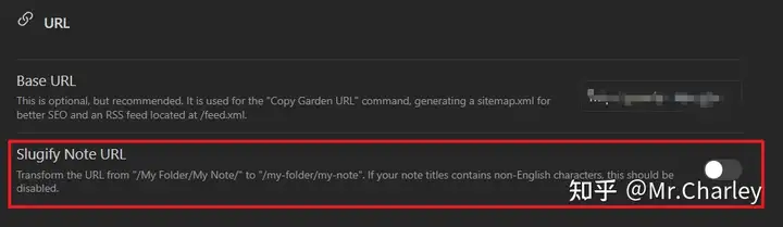对于非英文笔记要注意关掉以下配置,不然会出现同一个目录下的多篇笔记,你只能发布一篇到你的数字花园,因为非英文字符无法处理导致路径的冲突,这也是我踩过的一个坑。